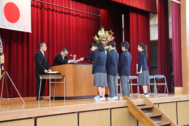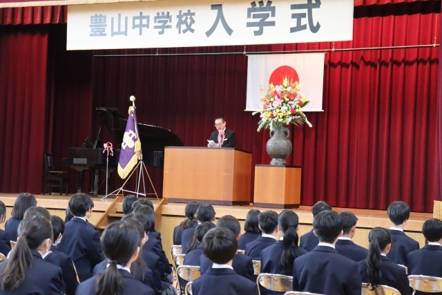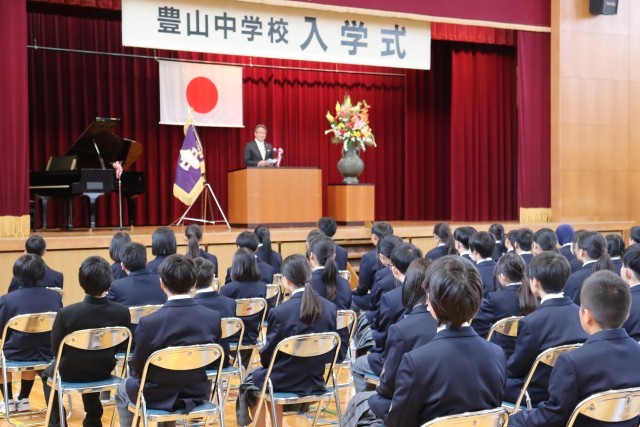 校長先生の式辞では、本校の校訓「創造・責任・健康」と、これから目指してほしい生徒像についてお話があり、1年生の担任発表がありました。来賓を代表して町長様から祝辞をいただき、新たな中学校でのスタートを一層自覚することができました。