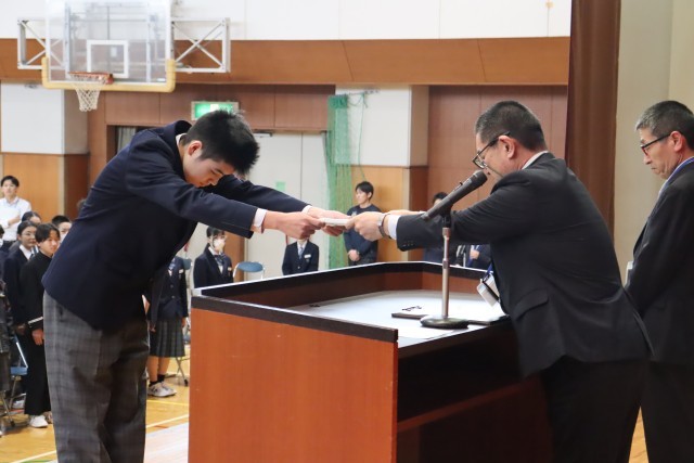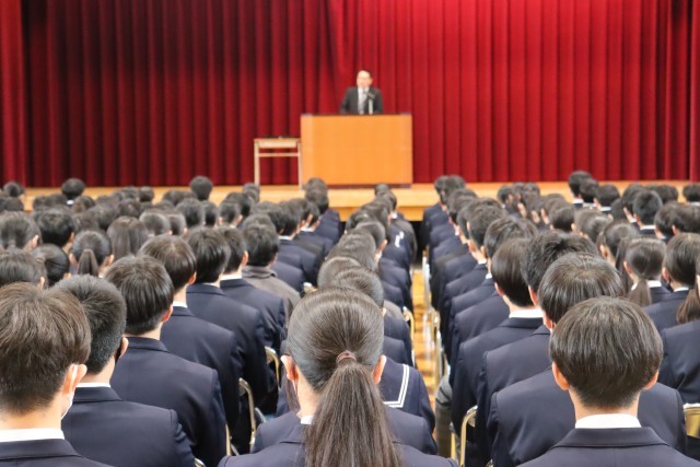 校長先生からは、「豊山中学校をよりよい学校にするために、失敗を恐れず何事にも挑戦してほしい」とお話がありました。