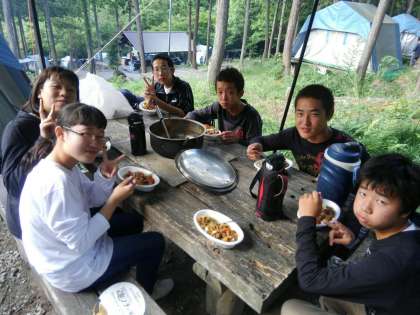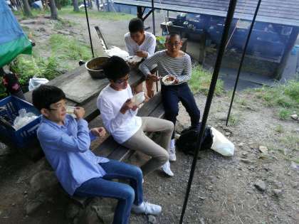 けむりに負けず頑張った結果、おいしいカレーライスが完成しました。