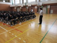 学年集会にて、進路指導主事から上級学校の体験入学について説明しました。生徒は真剣...