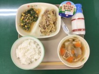 本日の献立は、ごはん、牛乳、しらす入りつみれ団子汁、豚肉とキャベツの塩こうじ炒め...